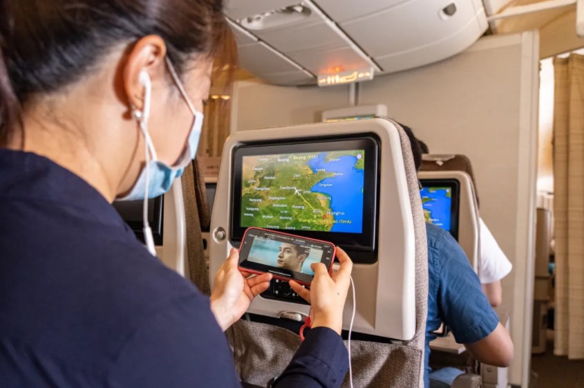 图:旅客体验空中高速网络在线追剧